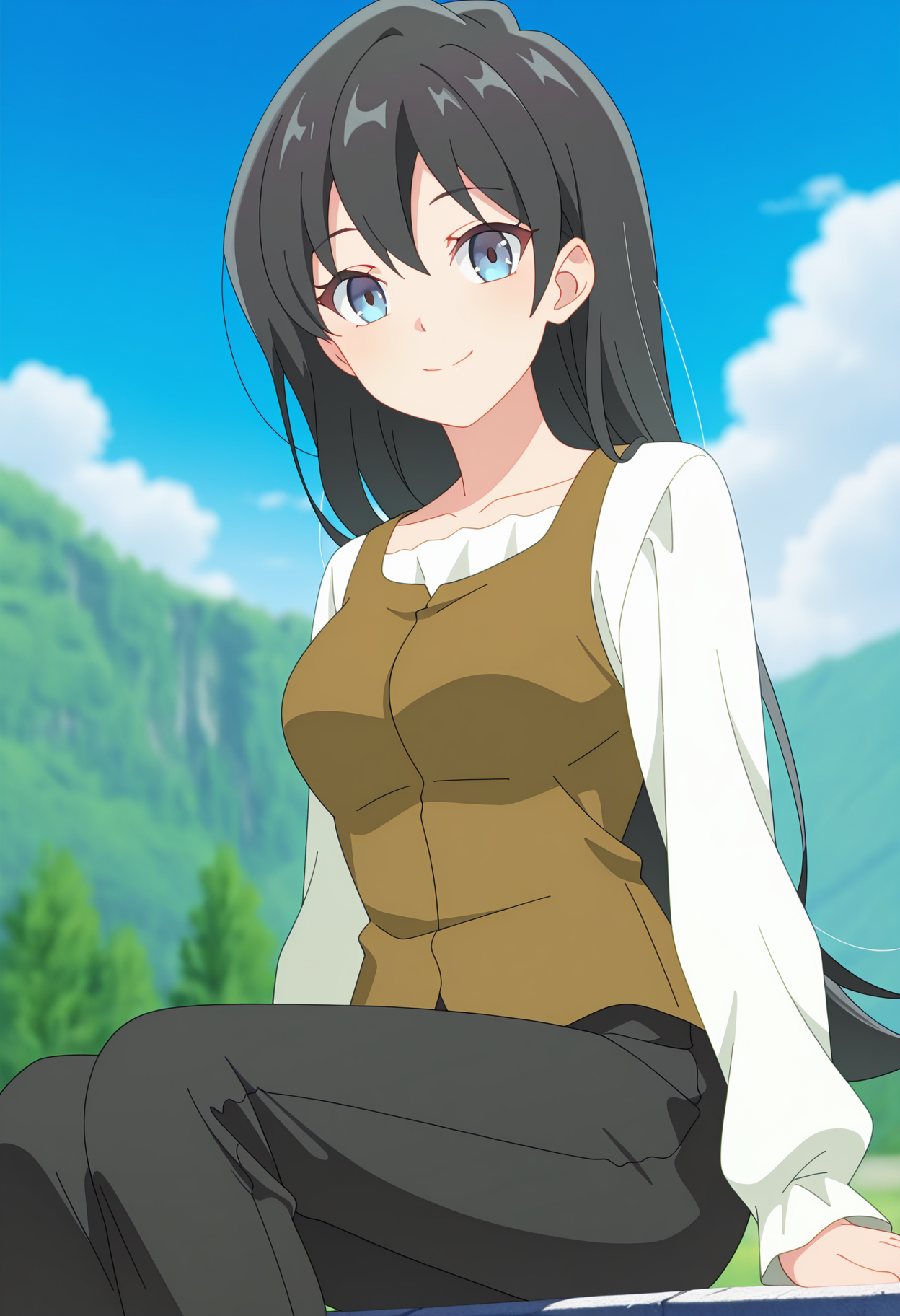 Outfit - white shirt, brown vest, long sleeves, black pants