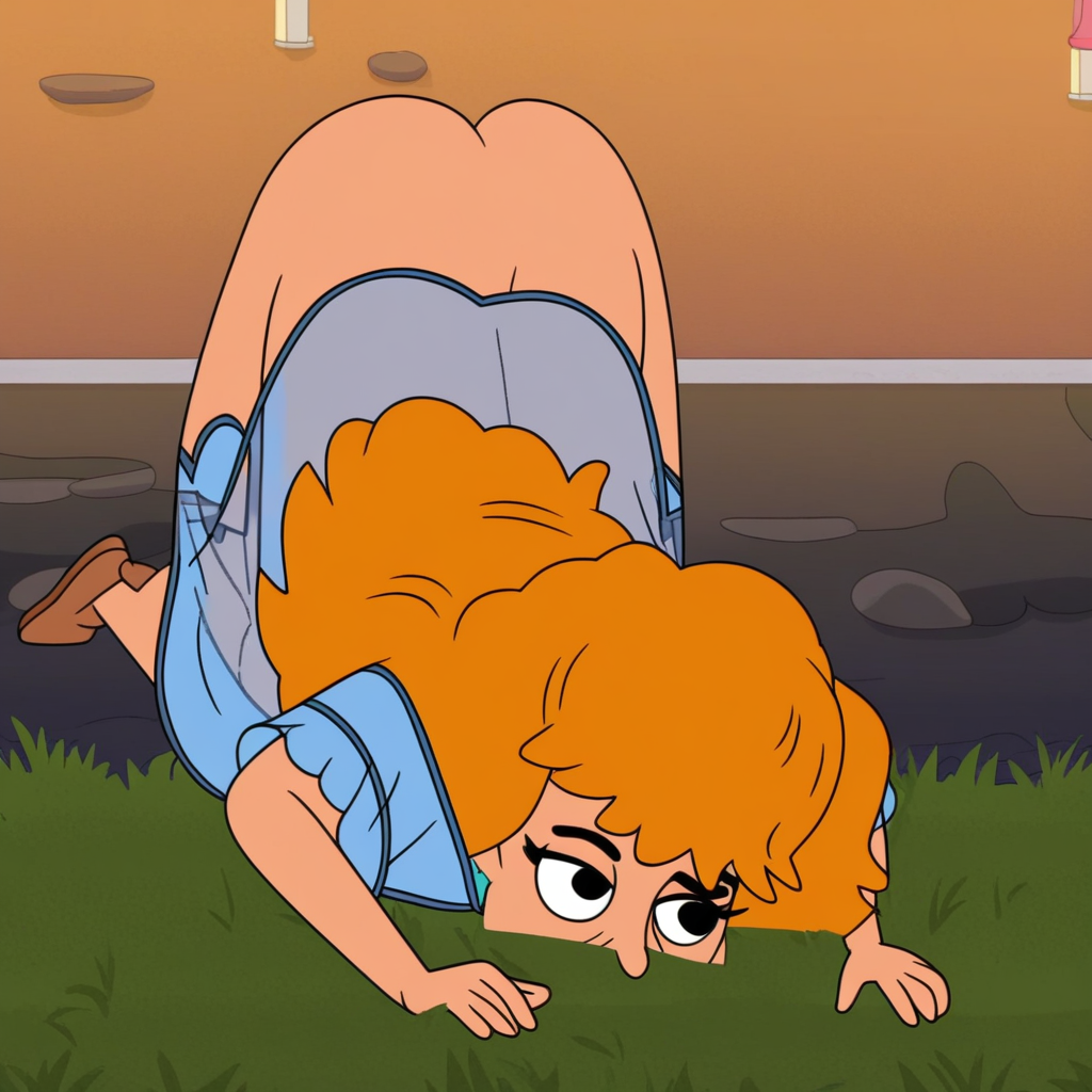 프롬프트: 과잉 보호하는 강아지 엄마, 혼자, 1소녀, 주황색 머리카락, 붉은 입술, 일반적인 입술, 파란색 드레스, 히피 드레스, 파란색 코트, 노란색 스웨터, 초록색 셔츠, 분홍색 프레스, 분홍색 수영복, 원피스 수영복, 분홍색 목걸이, 검은색 파자마, 하수도로 뒤덮임, 머리카락에 가지, 머리카락에 잎, 눈가리개, 귀걸이, 안경