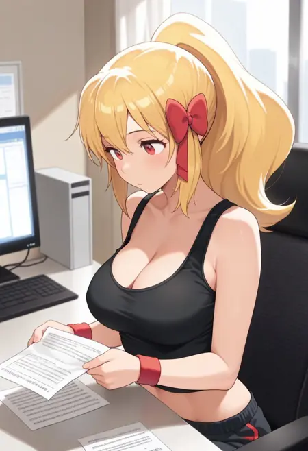 トリガーワード: miru eru、ロングヘア、ブロンドヘア、赤い目