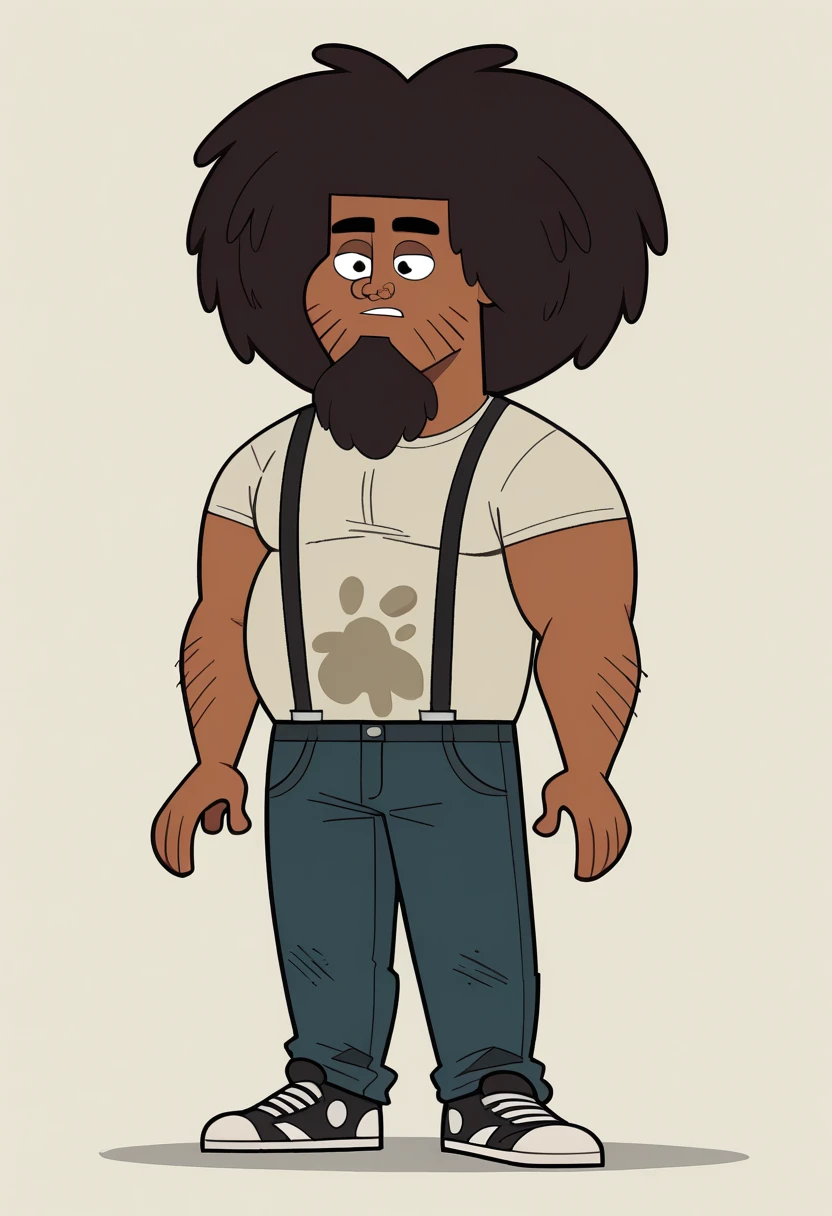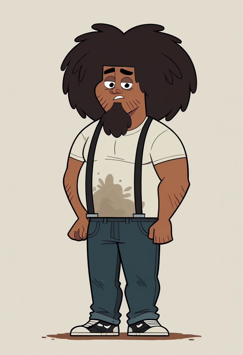 | トレーニングワード | BeardoTDPI, 1boy, dark skinned male, dark brown afro hairstyle, black stubble, dark brown goatee, light grey t-shirt with a stain, black suspenders, dark blue jeans, black sneakers, black eyes, fat, chubby, dirty clothes, black thick eyebrowsコピーしました! |