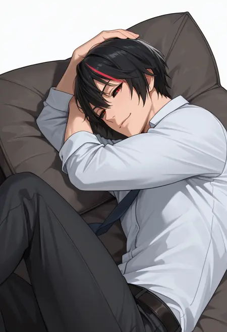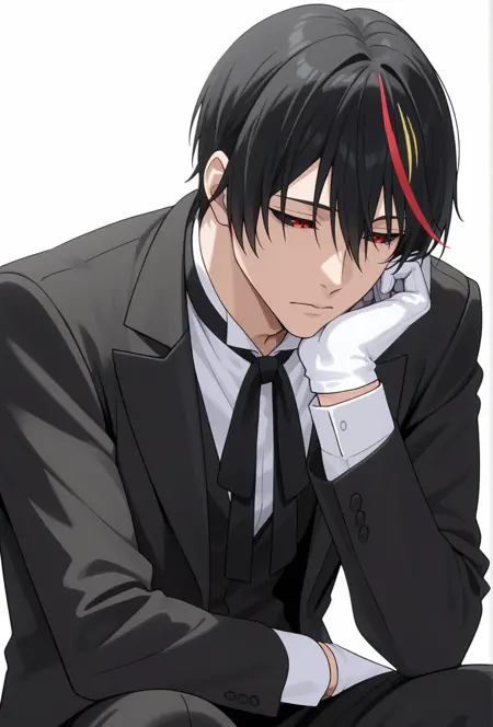 diablocnn, , 1boy,black hair, short hair, streaked hair, red eyes,black sclera,