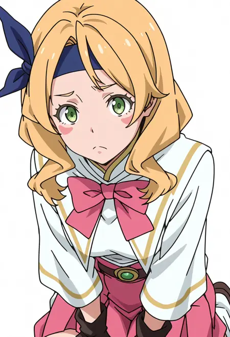 erencnn, 1girl,long hair, blonde hair, green eyes, headband, blush stickers,