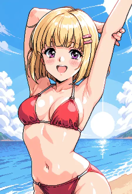 トリガー: "t0m0y0、短い髪、まっすぐな前髪、金髪、ヘアクリップ"