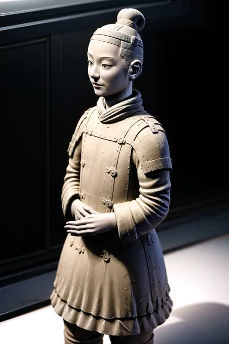 由多张兵马俑图片包括概念图、广告等训练而成。无提示词,风格强烈震撼。请注意,本lora可能与一些纯2D模型相性较差。