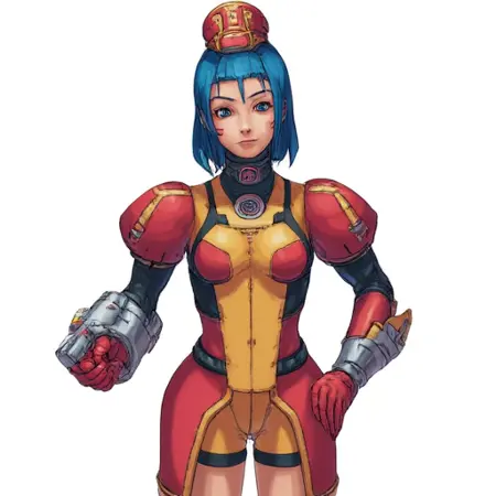 나는 "이미지는 애니메이션 스타일의 디지털 드로잉으로, 운동적인 체형과 자신 있는 자세를 가지고 있다"고 쓰고 있다.