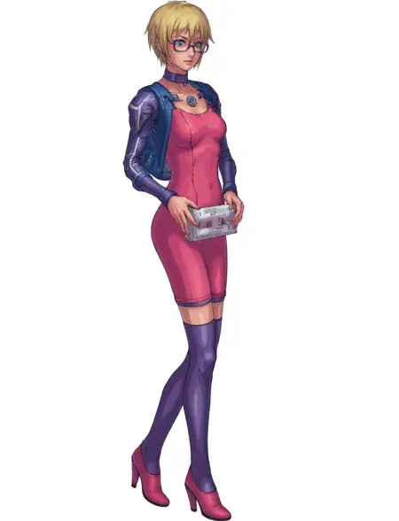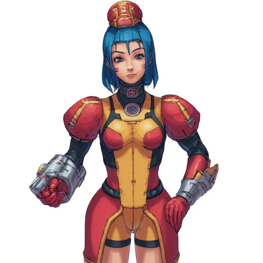 I be writing "The image is a digital drawing in an anime style, athletic build with a confident stance"