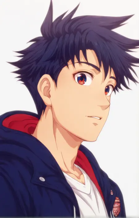 ace, ace anderson, dark blue hair, gradient eyes, blue eyes, red eyes, spiked hair,