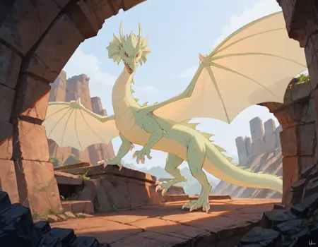 巨大で凶暴な翼を持つ龍で、飛行し、火を吐くことができる。彼は、彼に挑戦しようとした数多くの戦士を殺し、喰らってきた。そして、彼の領地である、本の山の頂上にページマスターに至る出口がある場所を守っている。