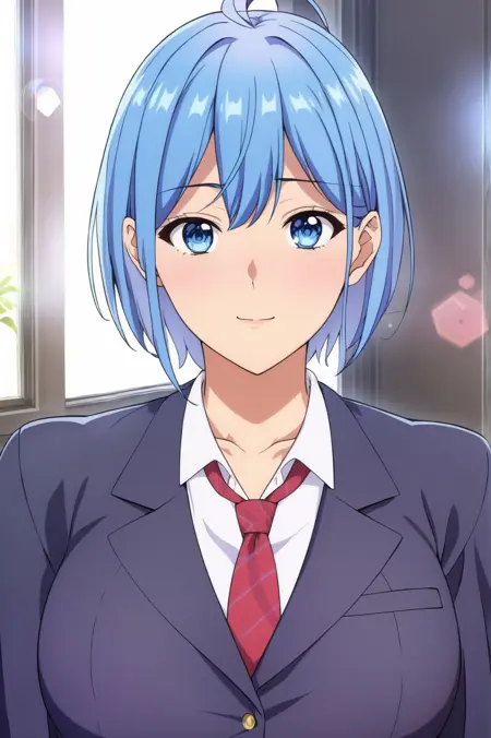 蓝色头发,蓝色眼睛,刘海,长发,天线发,白色发带,