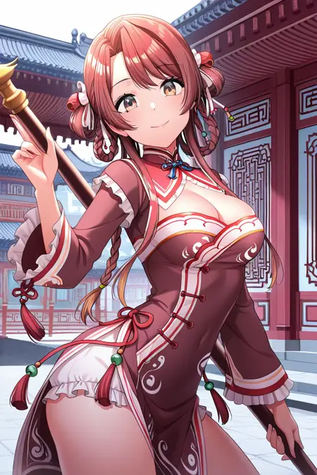 haruna, 1girl, solo, long hair, school uniform, skirt, brown hair, sailor collar, pleated skirt, neckerchief, brown skirt, long sleeves, smile, shirt, collarbone, white sailor collar, lillilly school uniform