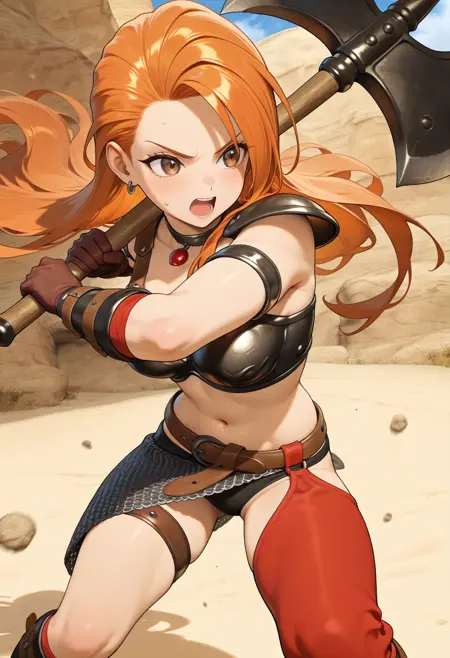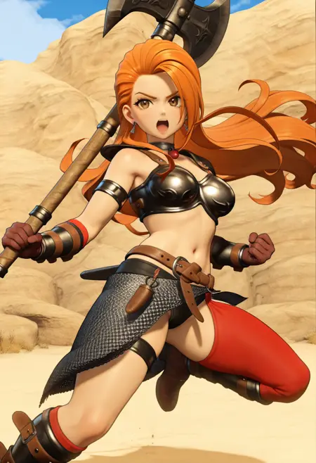 dqh2_desdemona, orange hair, long hair, brown eyes,