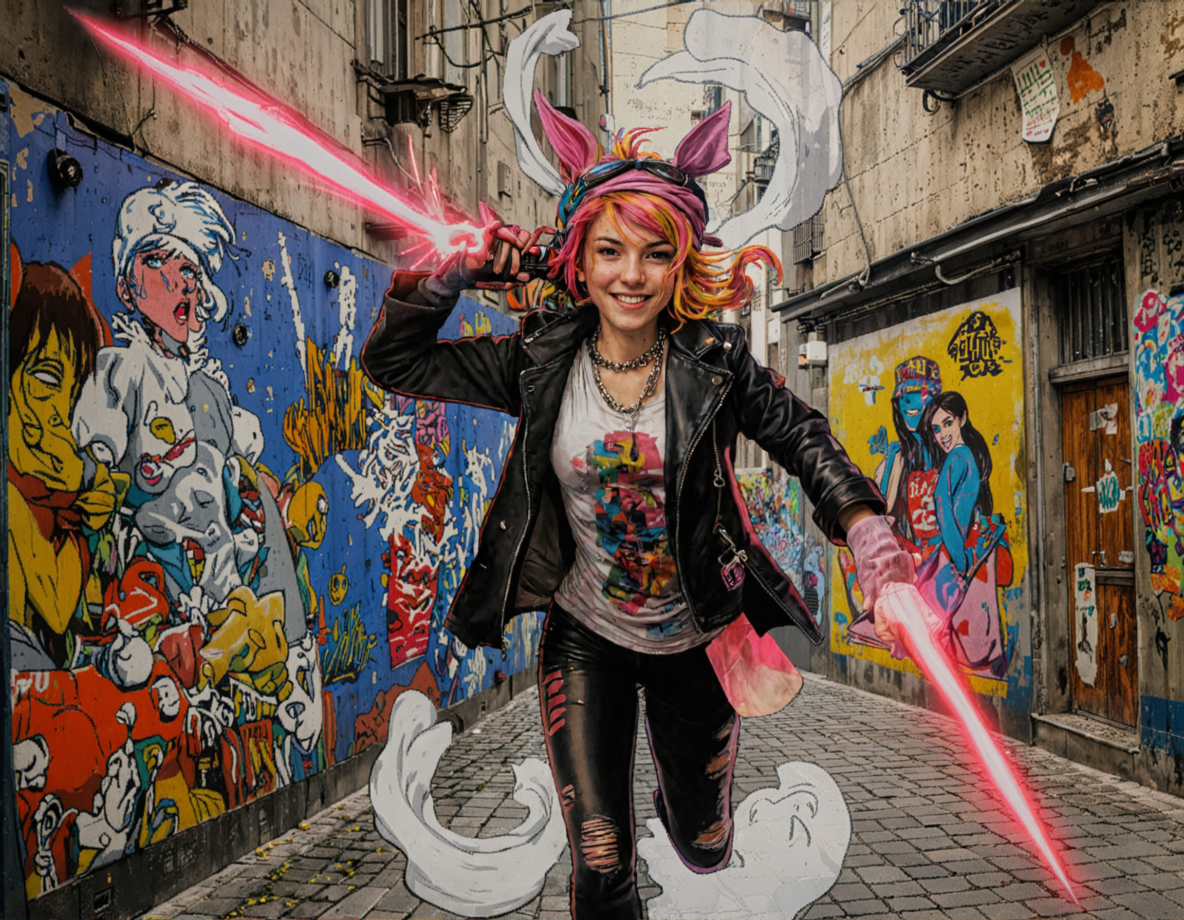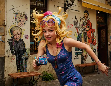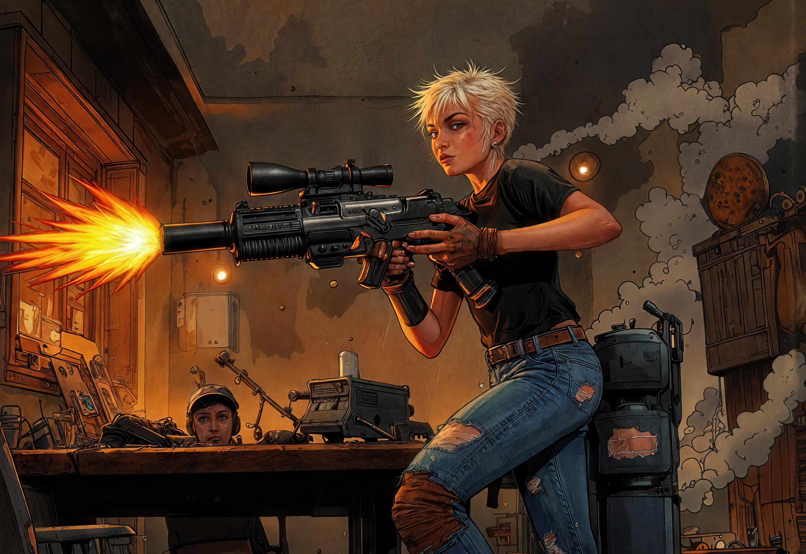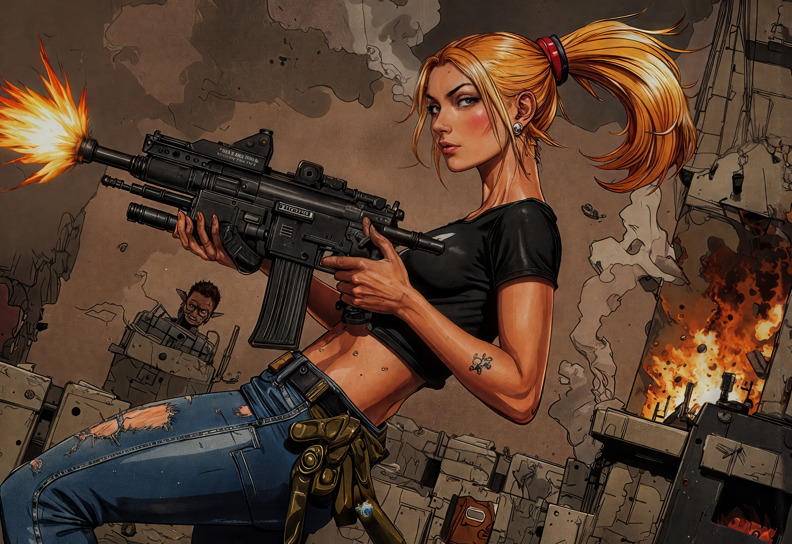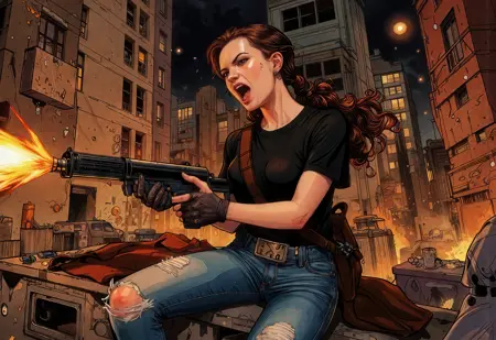 lora trained with some 50 images from the “Tank Girl” comic strip.