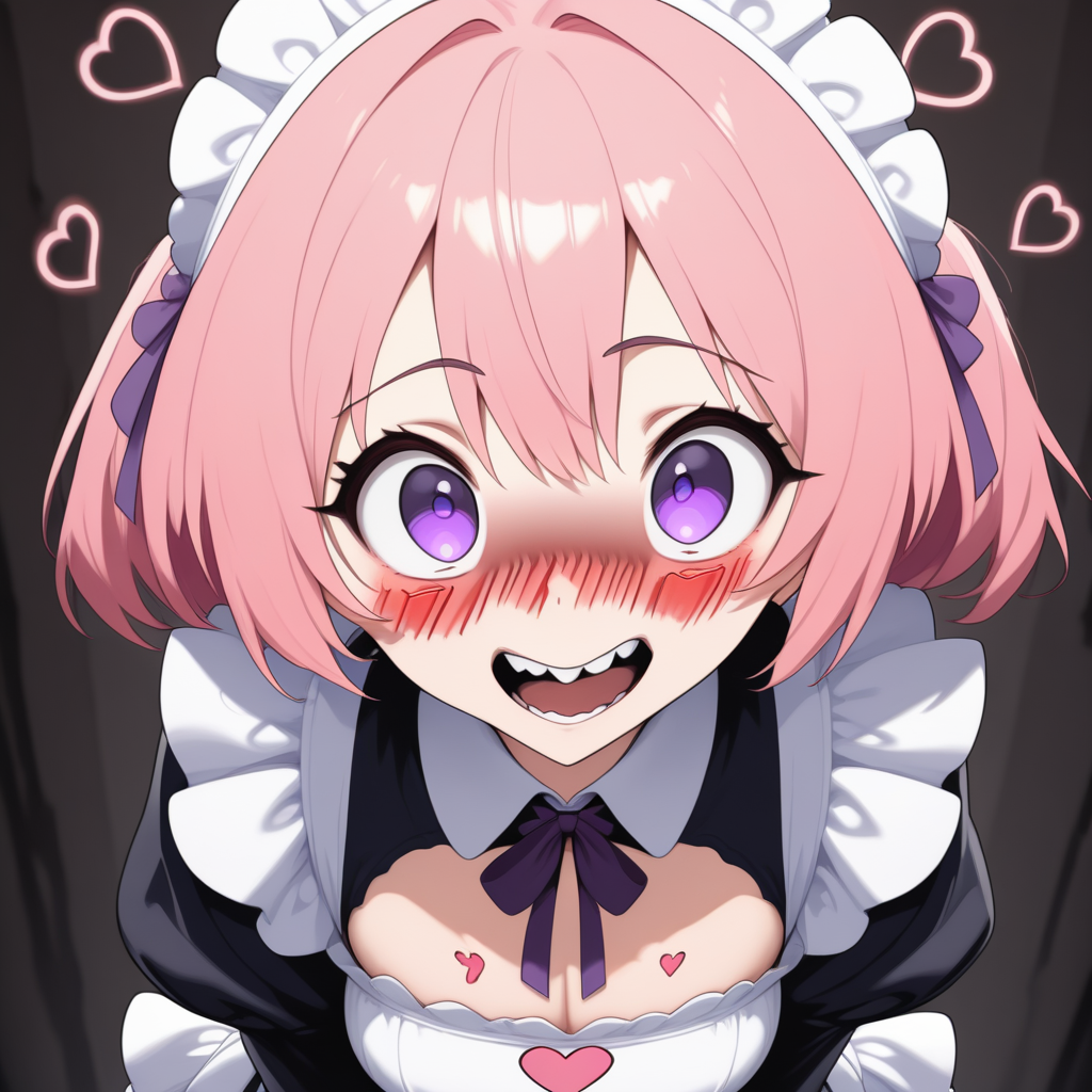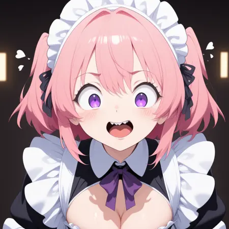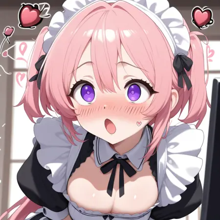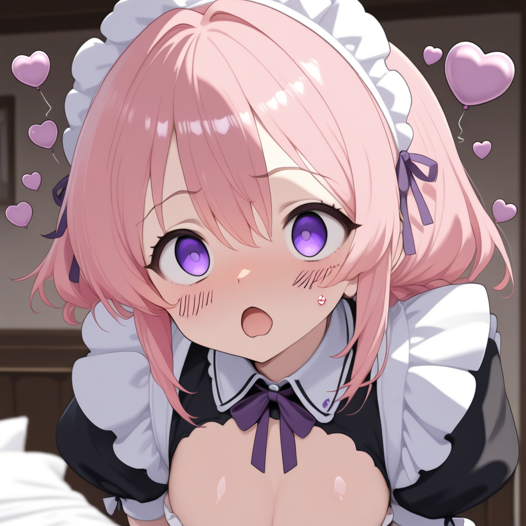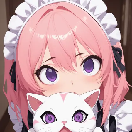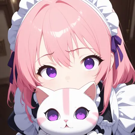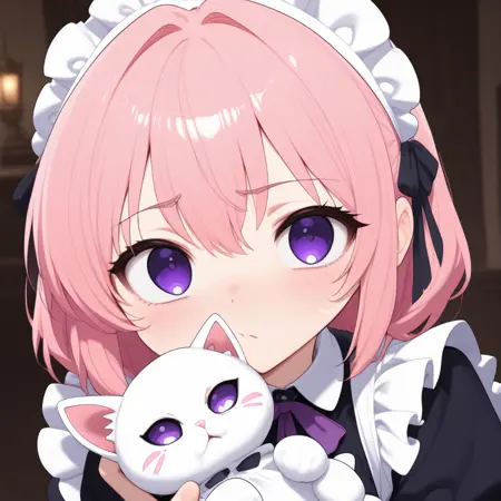 Civchan, pink hair, purple eyes, maid outfit