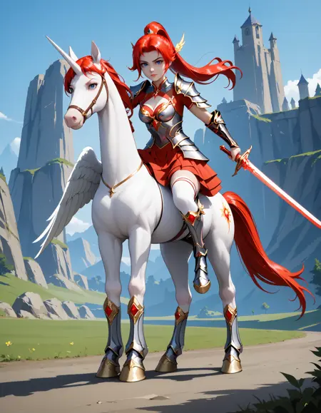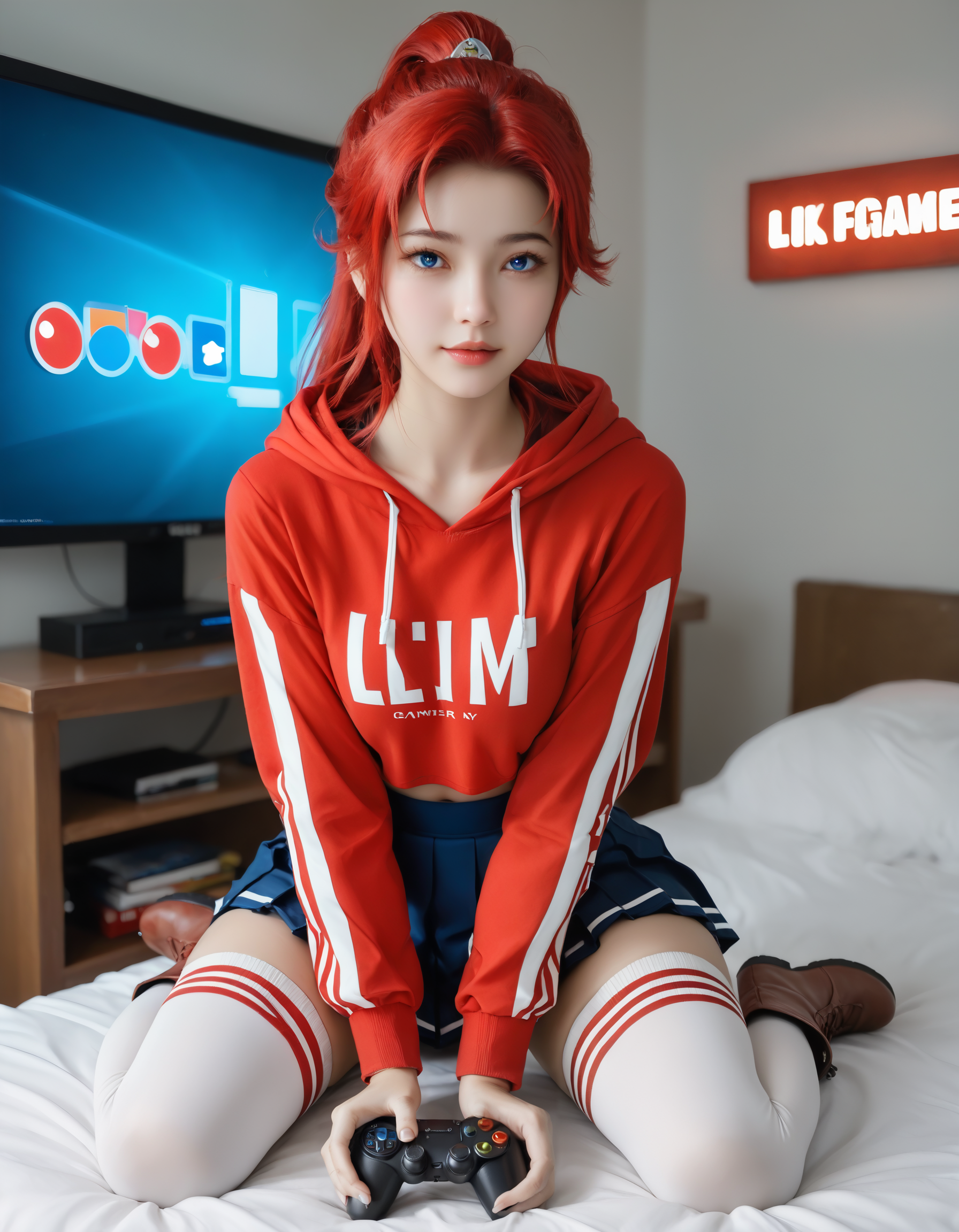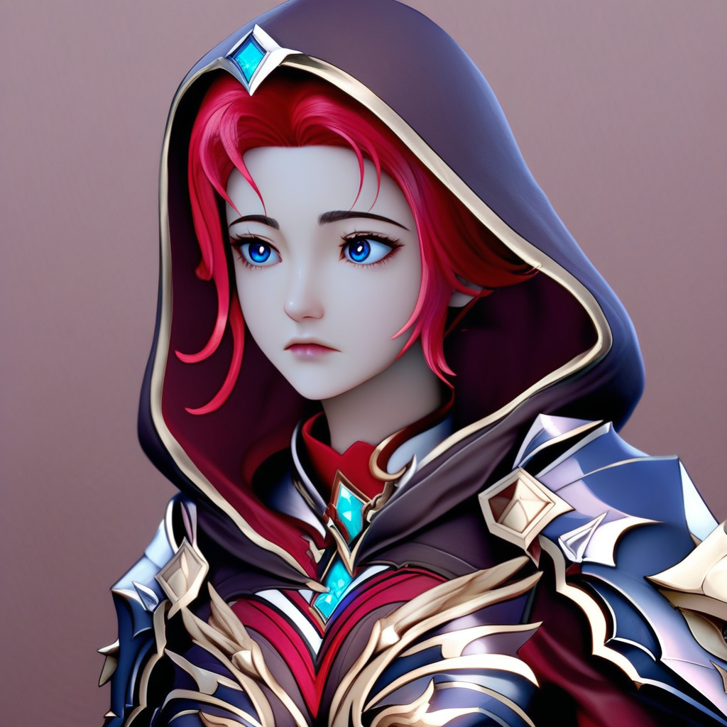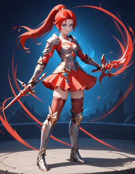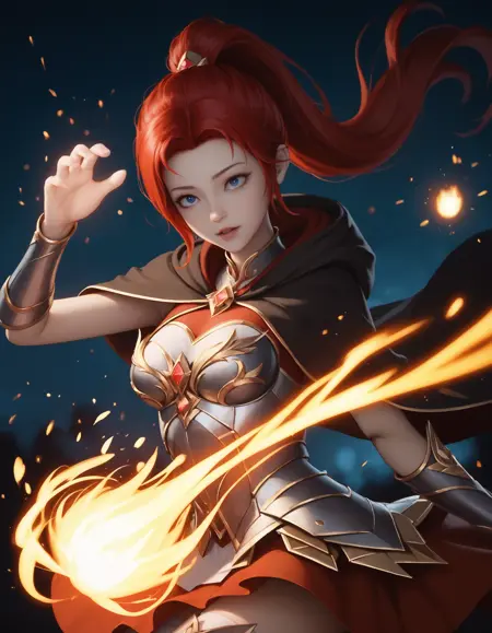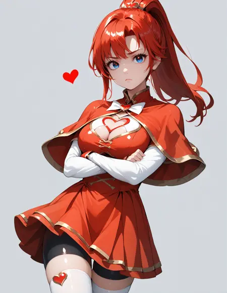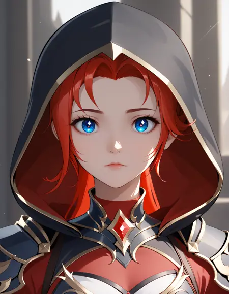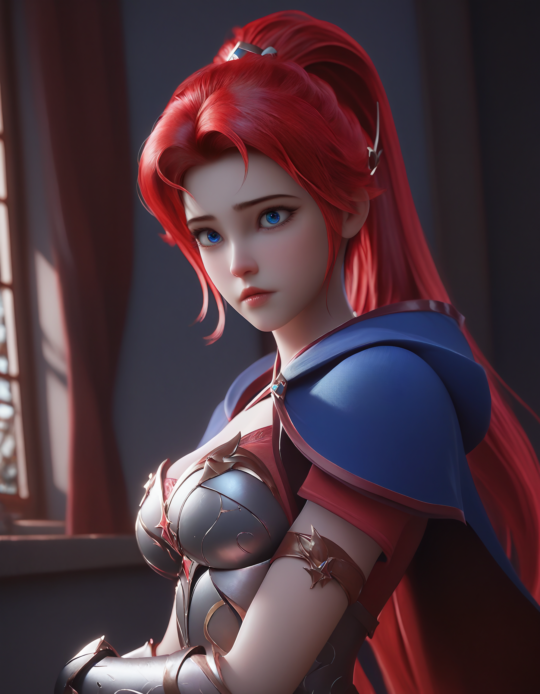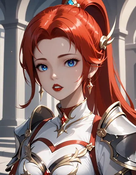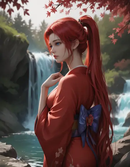李心、赤髪、青い目、髪飾り、ポニーテール、長い髪