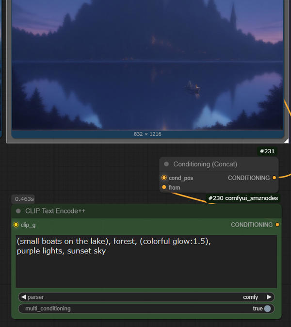 将“Conditioning(Concat)”的输出连接到第2步的“cond_pos”。