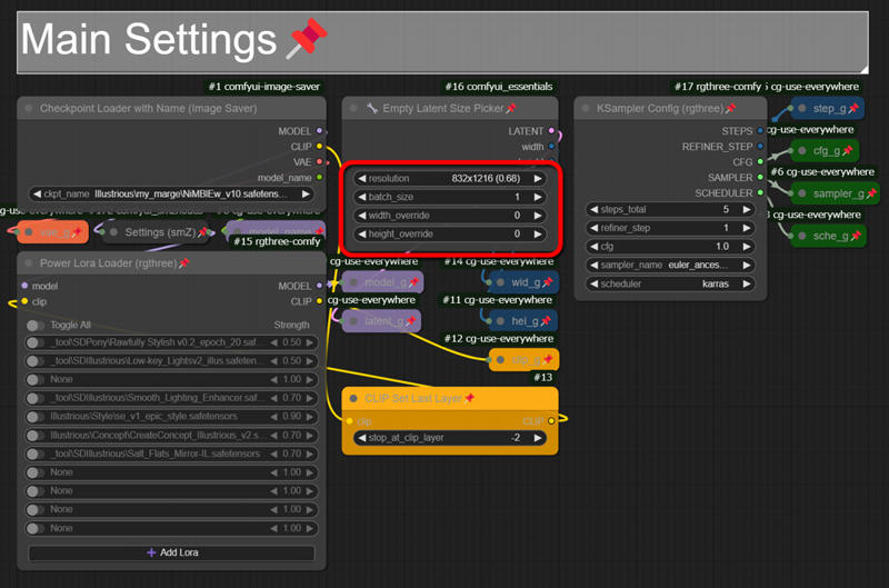 - 在主设置区域设置检查点 LoRA 图像尺寸