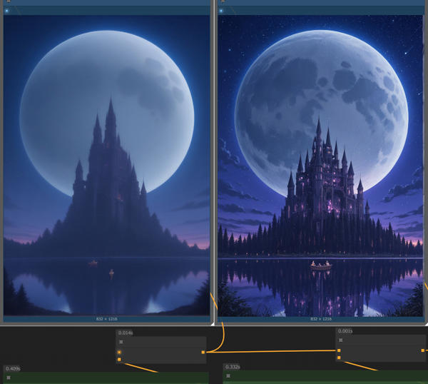使用左侧的旁路选择器仅启用第1条路径,输入提示词,并导出结果。