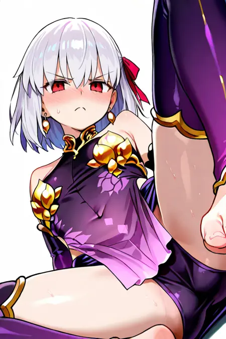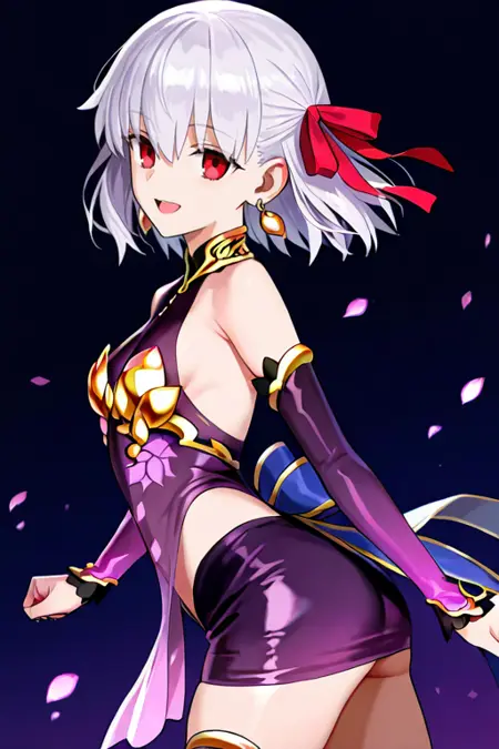 1소녀, 혼자, kama_(fate), 단발, 흰색 머리, 머리 리본, 빨간 눈, 귀걸이,