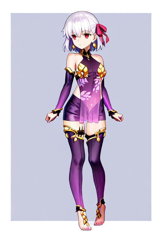 小さい胸, kamasdef, 肩出し, メタルの首輪, 外れ袖, 紫のドレス, wariza, 花柄プリント, ジュエリー, アームレット, 紫の袖, 骨盤カーテン, ミニスカート, 紫のスカート, サイハイ, 紫のスータン, 足, 裸足,
