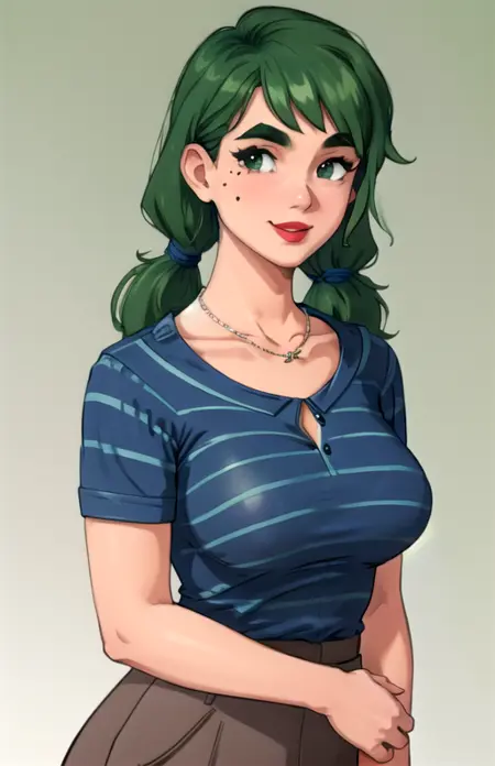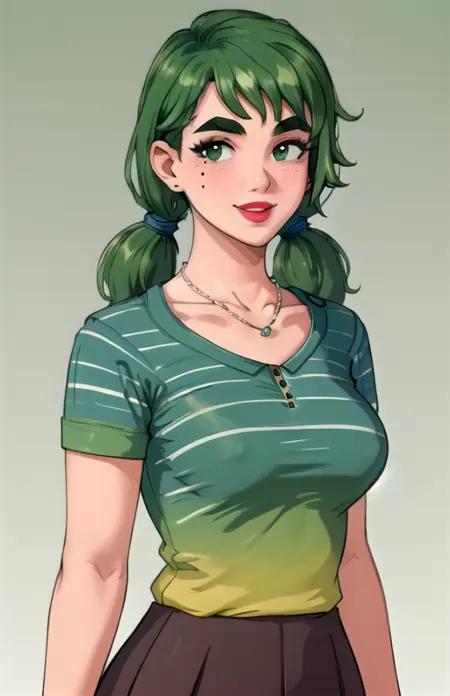 Support me: Ko-fiCommissions: hereCaroline from Stardew ValleyTested at 0.7-1Trigger Wordscaroline, green hair, twintails, green eyes,add: blue shirt,striped shirt, skirt,