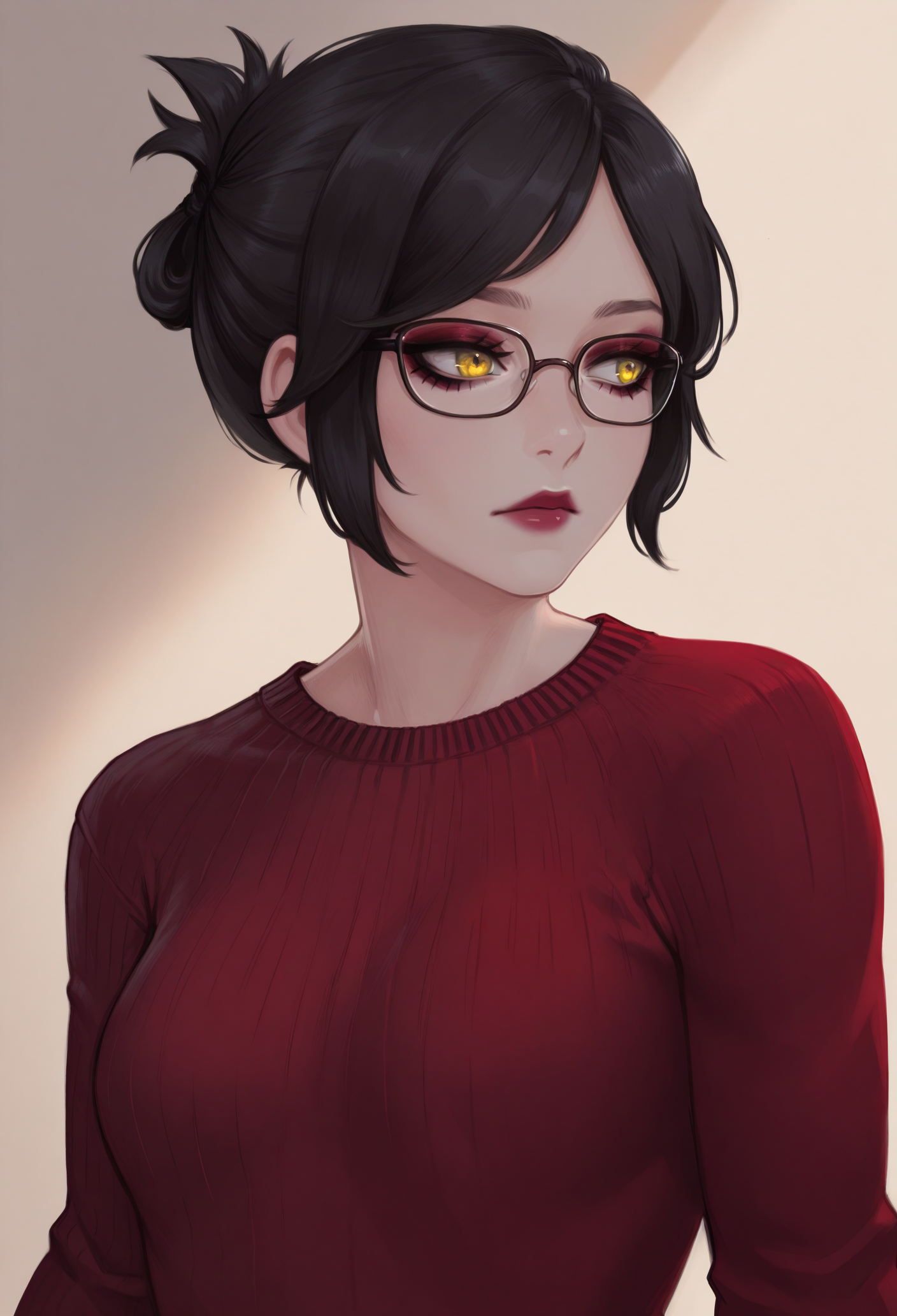 Character Tags: black hair, short hair, yellow eyes, makeup