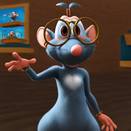 loola, mouse, female, anthro brown eyes, anthro grey fur, pink nose, pink eyelids, Glasses Gold, 3D