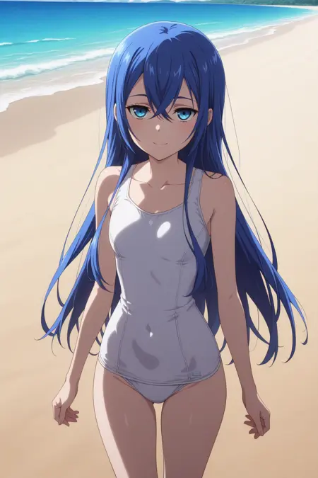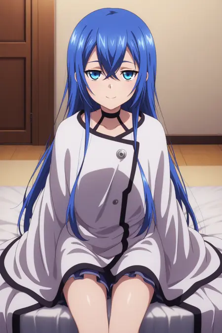 aaastarte, blue eyes, blue hair, crossed bangs, choker, white cloak, anime coloring,