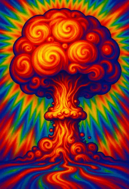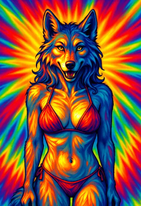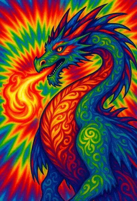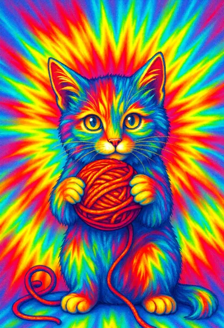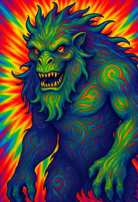 提示:这是一幅充满活力、迷幻的数字绘画,描绘了 (主体),其图案如漩涡般旋转, reminiscent of tie-dye artwork。