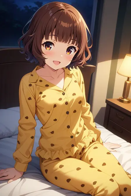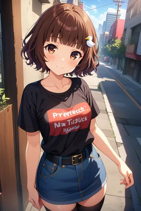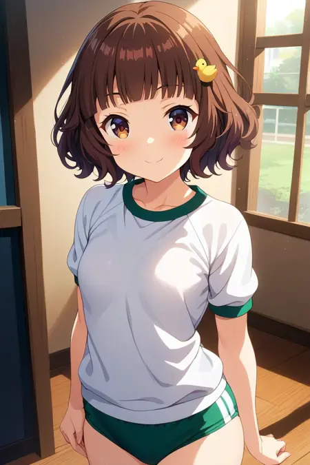 Trigger words: fukitaibuki, short hair, brown hair, duck hair ornament, blunt bangs, brown eyes