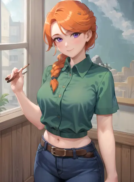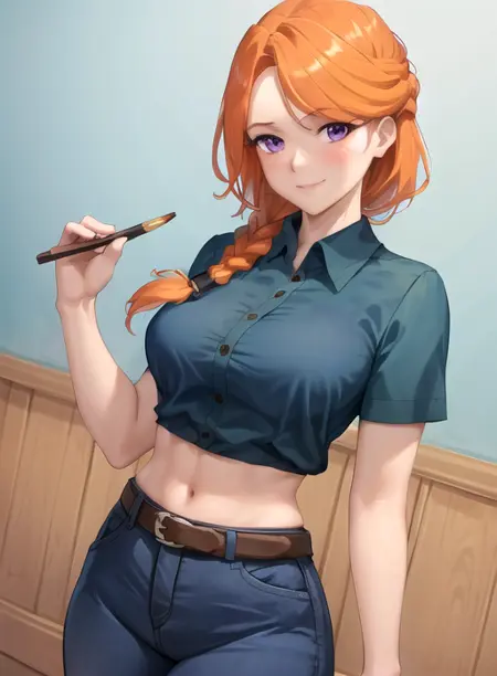 Support me: Ko-fiCommissions: hereleah from Stardew ValleyTested at 0.7-1Trigger Wordsleah, braid, single braid, orange hair, purple eyes,add: green shirt, pants, boots