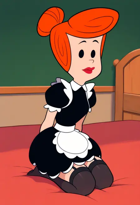 Basic prompts : 1girl, wilma, orange hair, hair bun, black eyes, red lipstick