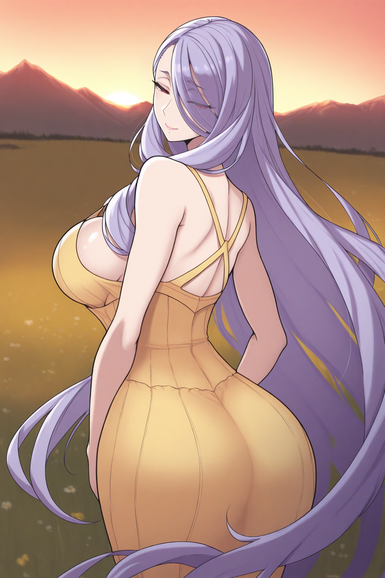 트리거 단어는 "vccmria"이며, "보라색 머리카락, 매우 긴 머리, 빨간 눈, 한쪽 눈 위의 머리카락"이 필수입니다.