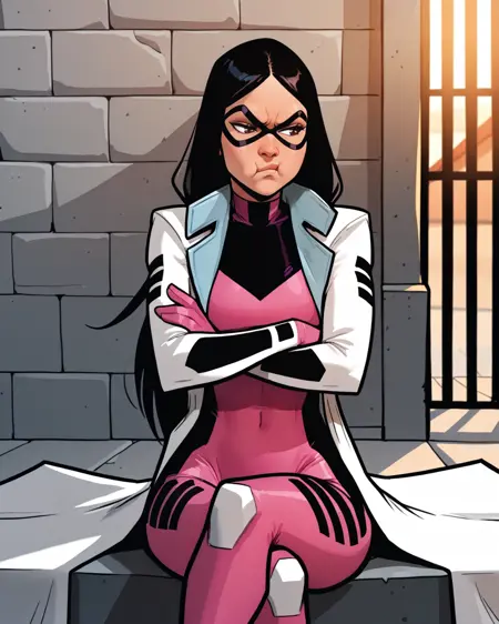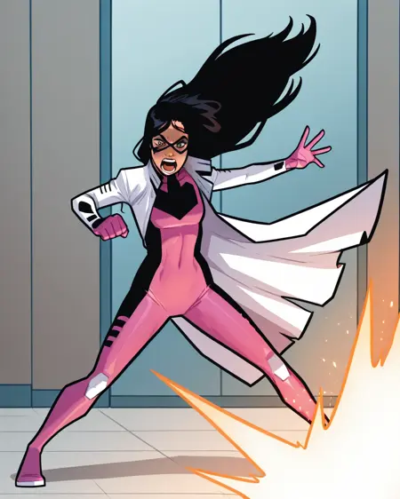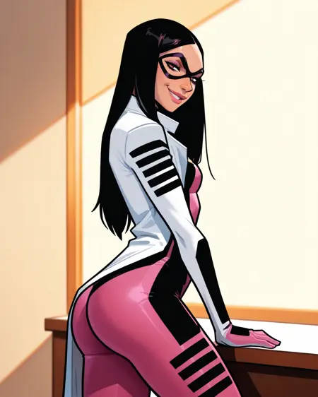 lanab, 긴 머리, 검은 머리, 도미노 마스크, 바디수트, 실험복