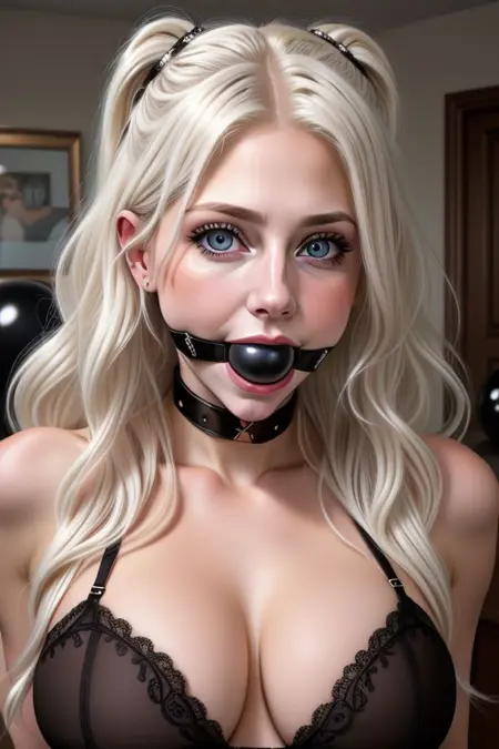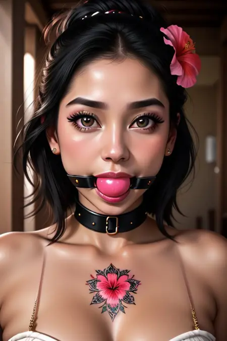 プロンプトで唾液を追加できます。例: - (色)ボールガグ with drool