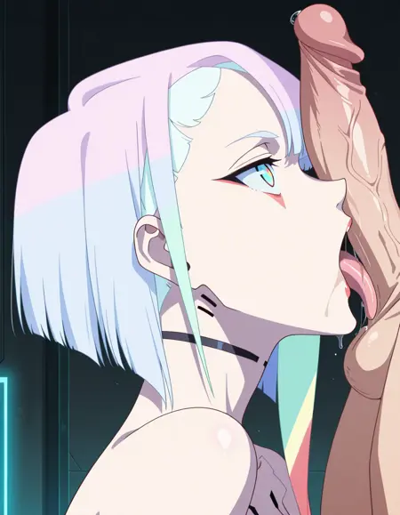 lora:licking-penis-from-side-illustriousxl-lora-nochekaiser:1 licking penis, from side, licking, oral, penis, tongue, tongue out, hetero, erection, testicles, saliva, penis grab, completely nude, looking up