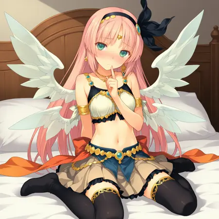 jewelry,thighhighs,hairband,earrings,skirt,navel,midriff,necklace,wings,