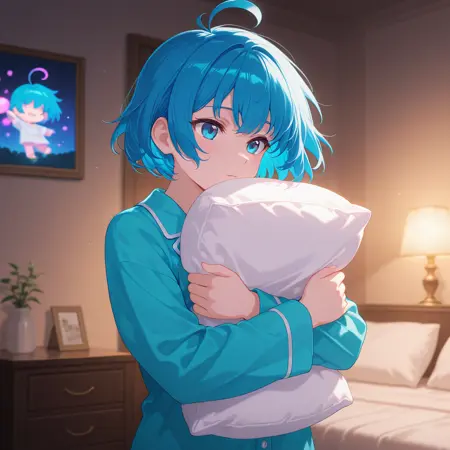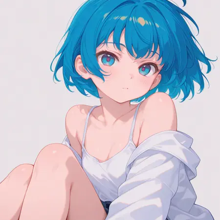 sk-aellie, 1girl, blue hair, (young), blue eyes, no_headwear, solo,