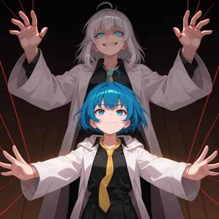 bad quality, worst quality, worst detail, sketch, censor, low qualtiy, normal quality, few detailed, normal detailed, lowres, wrong_perspective, normal background, simple background, ((extra digits, fewer digits, disfigured_hands)), goggles on head, adjusting eyewear, extra necktie, holding, bad anatomy, colored_slera, hair ornament, earrings, bow_belt, waist bow, clone_characters, flat_colors, stiff_pose, two-tone hair, gradient hair, very short hair, broken_perspective, extra_limbs, floating_objects, incorrect_lighting, motionless, cloned_creatures, hair bun, long hair, short hair, 4person, 4girls, white hair,