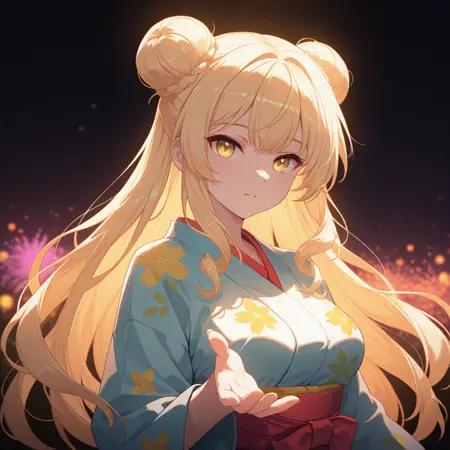 sk-amomo, 1girl, drill_sidelocks, blonde hair, (((long_hair))), double_bun, yellow eyes, no hair_ornament, solo,