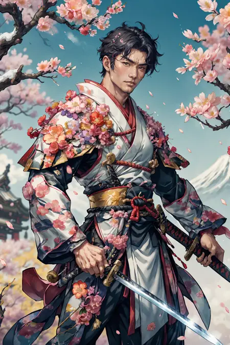 個人的には、これはやや物足りない印象です。なぜかAIは装甲や衣装ではなく、背景に花をたくさん配置してしまいます。そのため、これは「装甲変形LORA」というより「背景LORA」に近い感じです。しかし、見た目は決して悪くなく、確かに「ヴィンテージなフラワーモチーフ」の美的感覚は十分にあります。