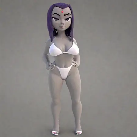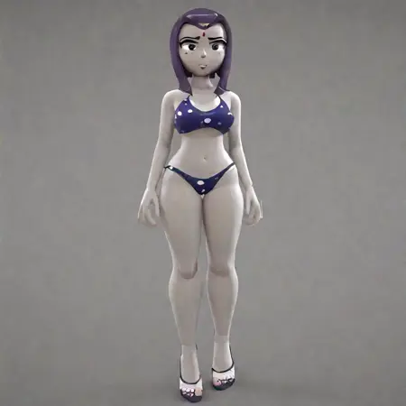 2. 乌鸦角色穿着比基尼在海滩上的全身3D模型图像