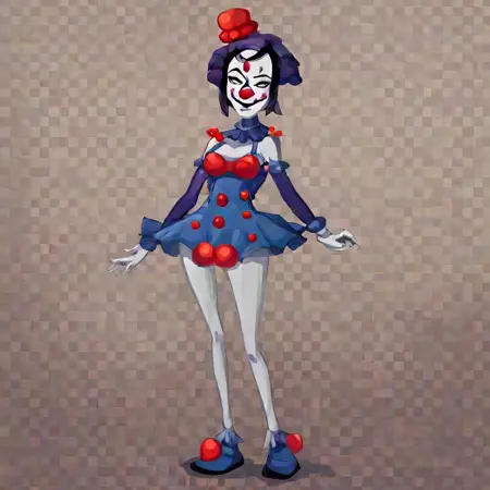 1. 乌鸦角色穿着小丑服装的动漫风格特写图像