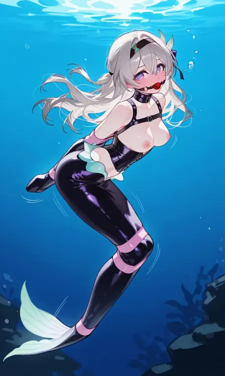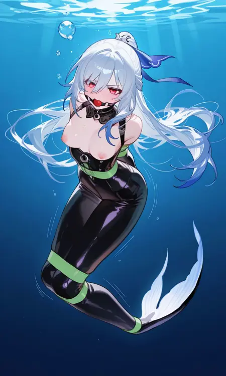 Prisoner mermaid restraining suit. 人魚スーツ拘束。囚犯美人鱼限制服。