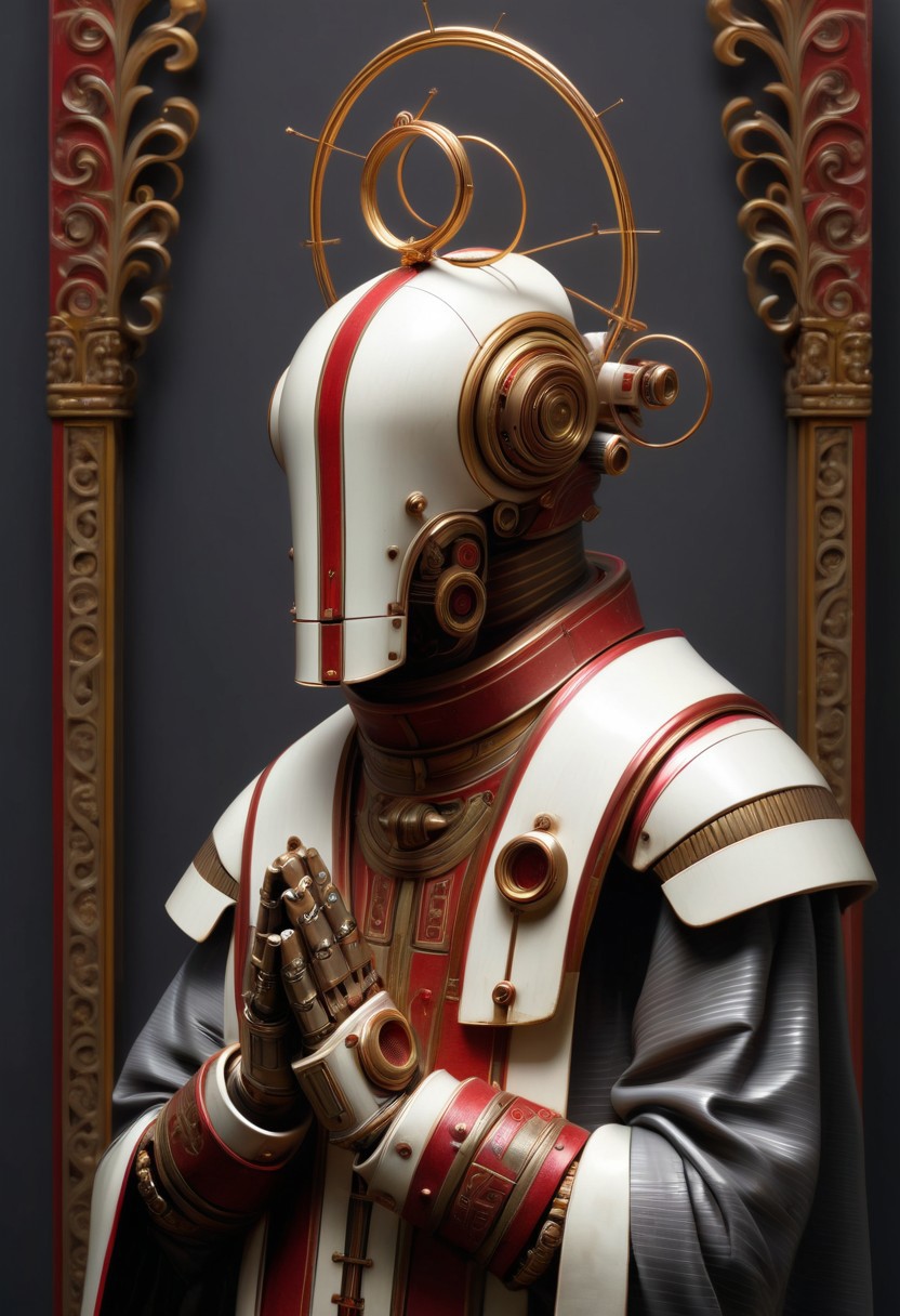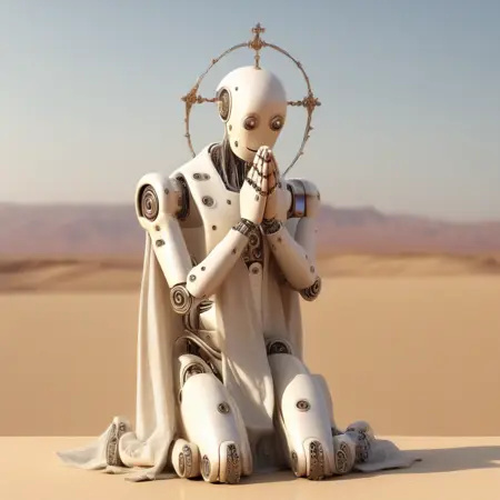 Sci-fi robots on a holy quest. The more descriptive you are on details the more bang for your buck.