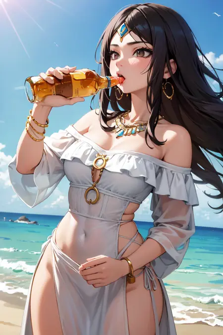 SD 似乎不太擅长生成人物正在饮用的瓶子,因此您需要一点运气才能获得一个不错的瓶子。