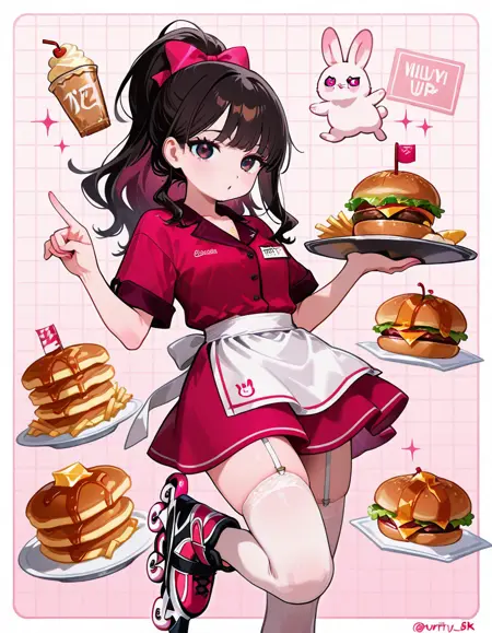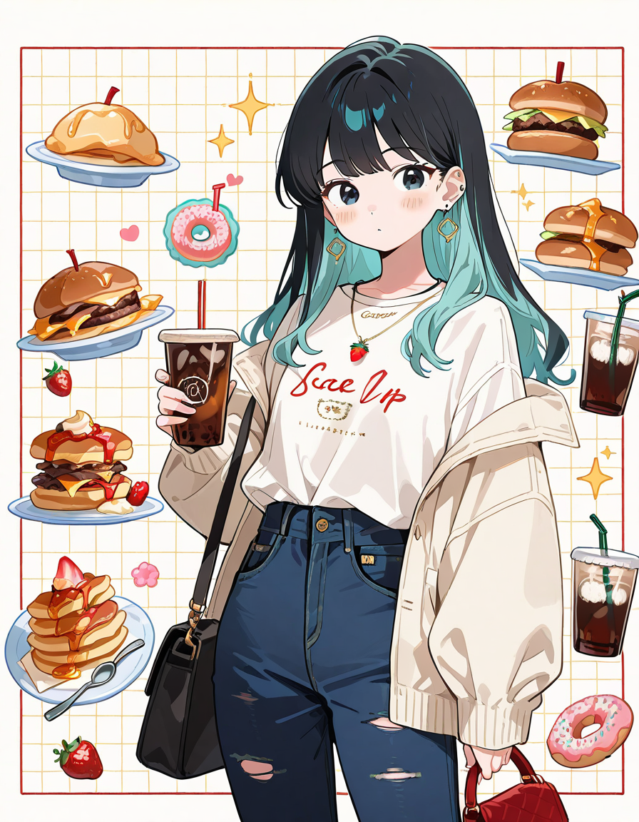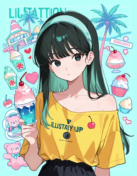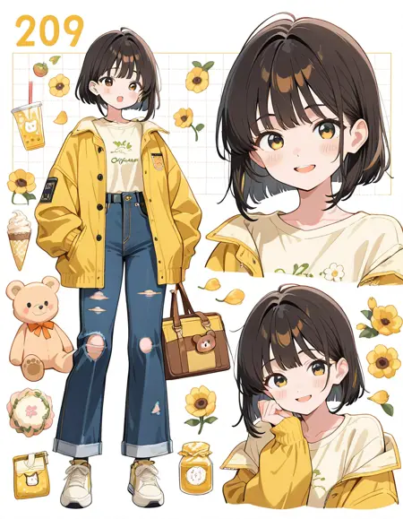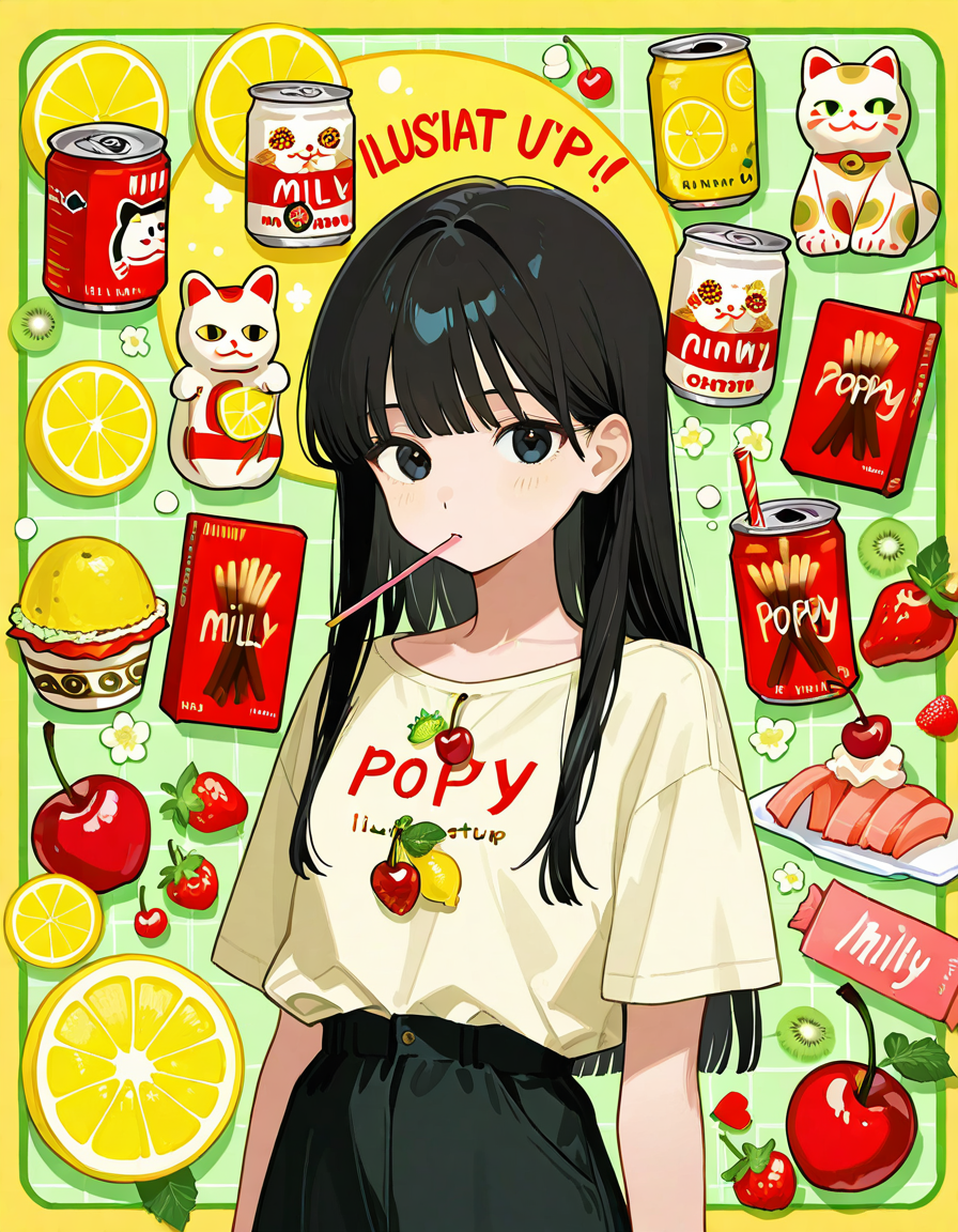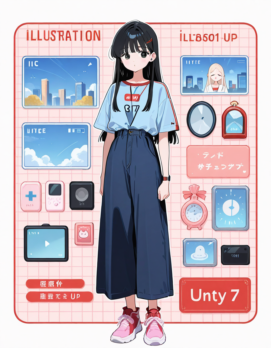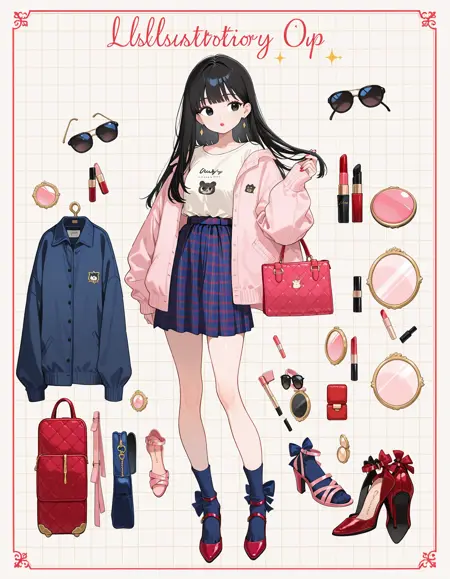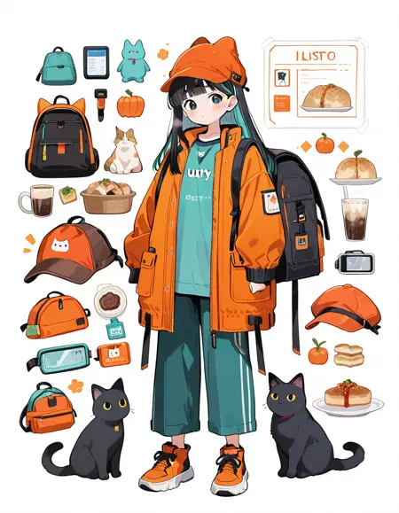 我不知道这种图像正式的名称是什么,但这是一种LoRA,可能将与该人物相关的、其喜爱的物品等对象分散布置在背景中。