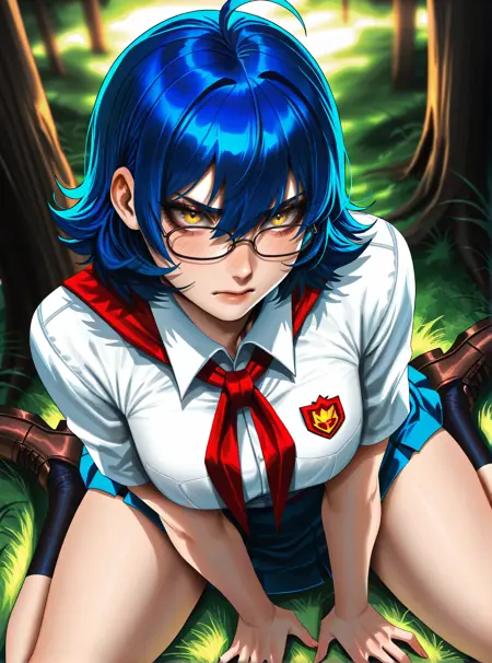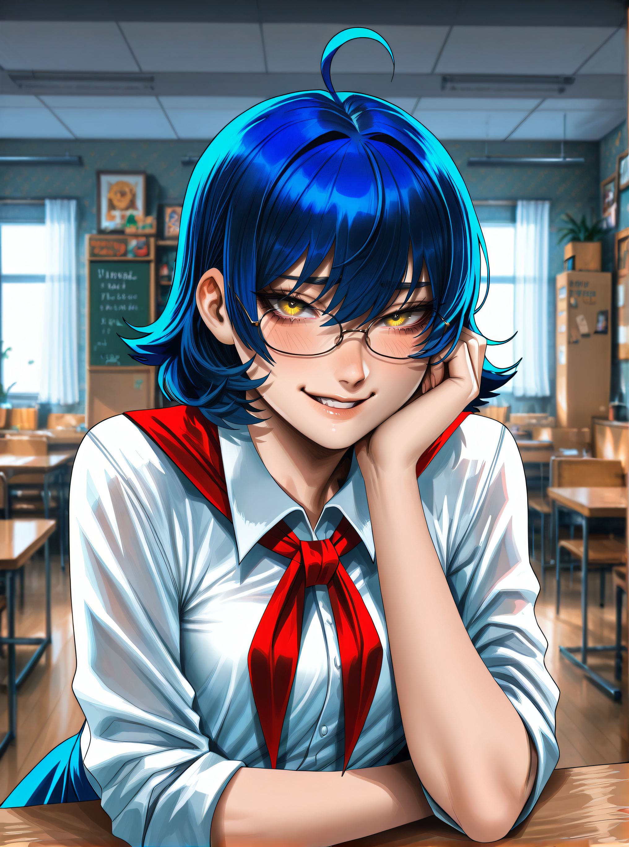 推奨重み: 0.75-1。基本的な服装のトリガー: zhenya_es、青い髪、短髪、あほ毛、黄色い目、白いシャツ、赤いネクチーフ、青いスカート