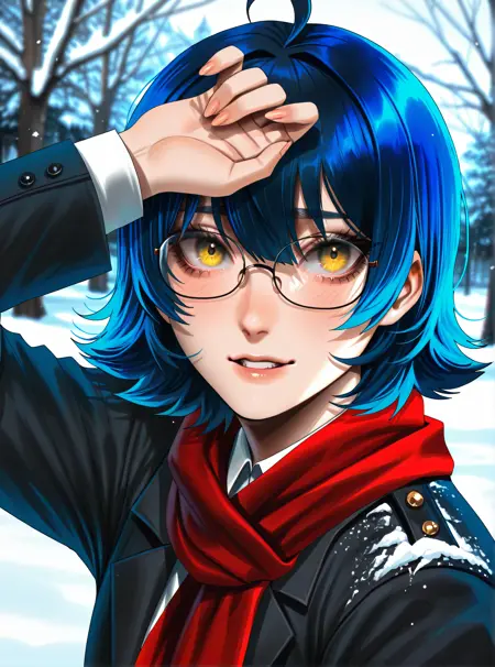 zhenya_es, blue hair, short hair, ahoge, yellow eyes