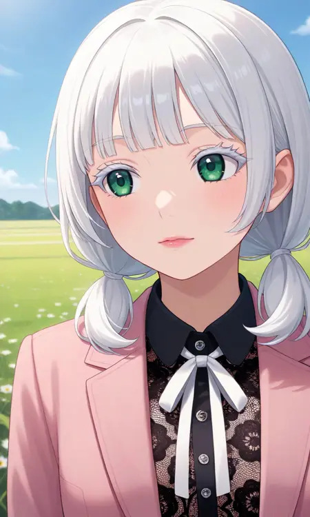 blazer,lace shirt,collared shirt,neck ribbon,buttons