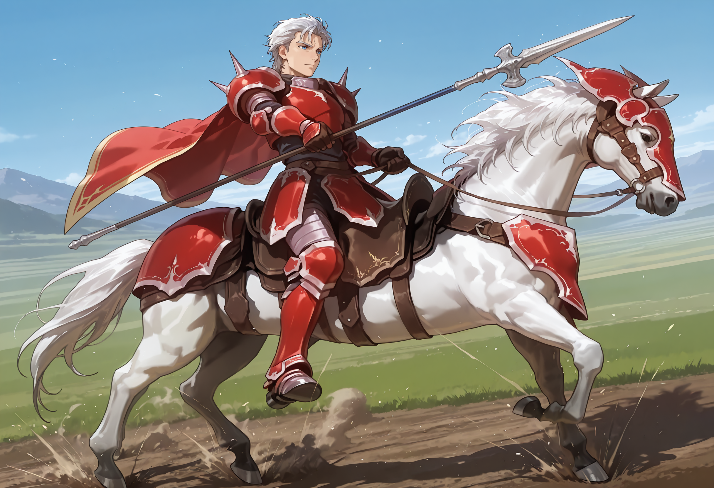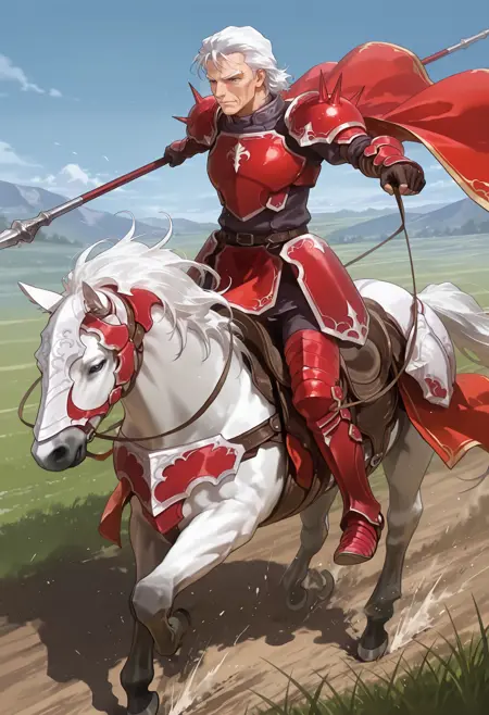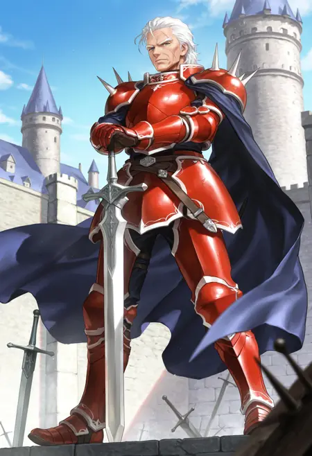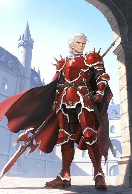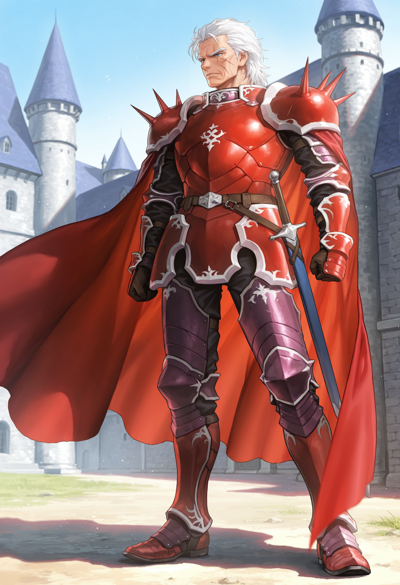 트리거 단어 : jagen_(fe), 1boy, 흰 머리, 파란 눈, 노인, 빨간 갑옷, 망토, 날카로운 돌기
